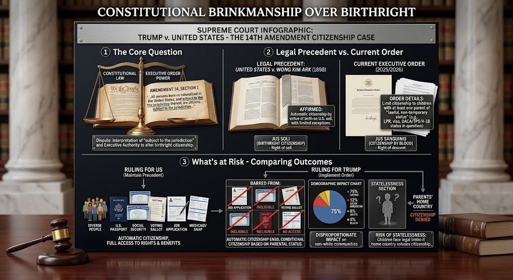 As the Supreme Court weighs arguments in Trump v. United States, the 14th Amendment faces a status-based challenge that could render millions stateless and redefine the social contract.