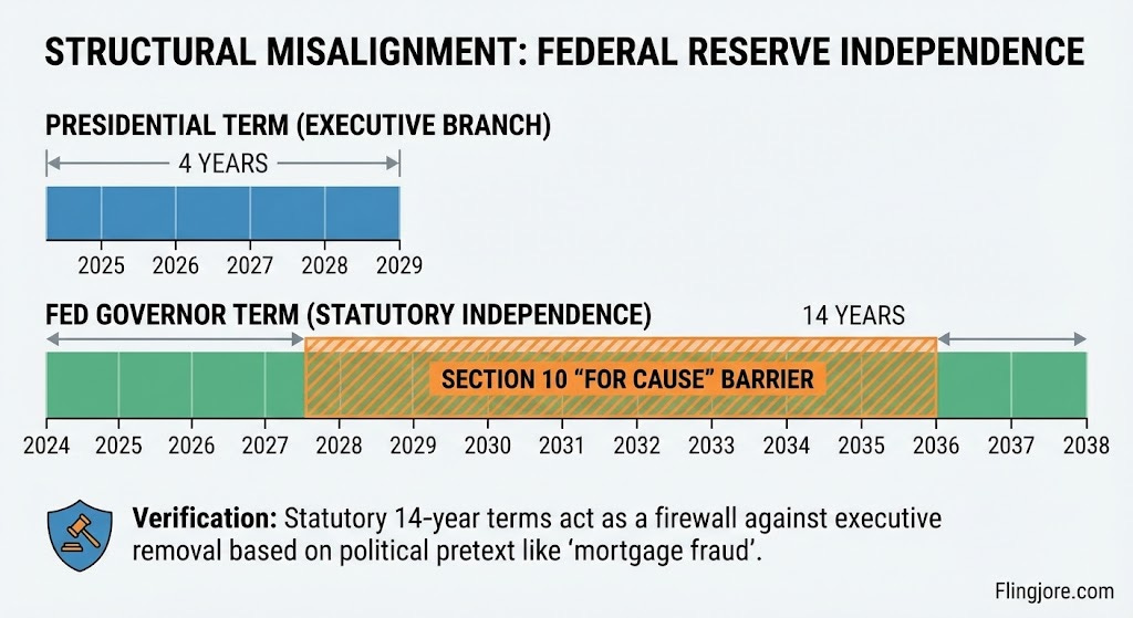The Intent: As verified by the Congressional Record of 1913, this duration was explicitly designed so that a governor’s term would outlast three presidential administrations, preventing any single president from packing the Board.