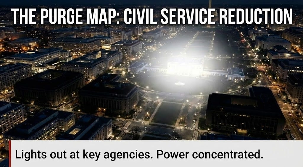 By firing tens of thousands of federal employees — 315,000 departures by mid-November, according to the Office of Personnel Management — the administration didn't just trim the fat. They severed the nerves connecting the brain of the state to its limbs, replacing career technocrats with loyalists. The result is a paradox: a government that provides fewer services (see the effective shutdown of USAID) but exercises vastly more raw power.