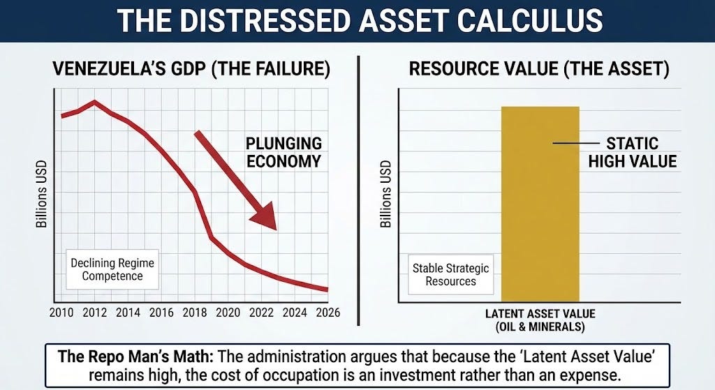 The Donroe Doctrine is not about spreading democracy or stopping endless wars; it is about the acquisition of distressed assets.